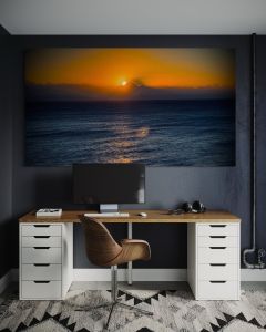 These images aren’t about “sunrise” as a subject. They’re about atmosphere. About what a room holds when you place a large-format photograph inside it. How the tonal range can soften a space without becoming decorative. How a single signature print can tune the air—calm, silence, breath, recovery. I think of these pieces as interior instruments.